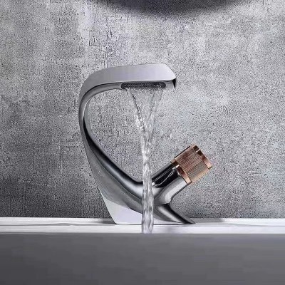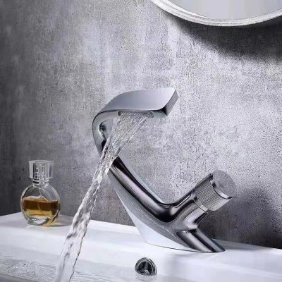 跨境全铜简约单孔瀑布洗脸盆水龙头冷热卫生间面盆龙头台下盆龙头 10件