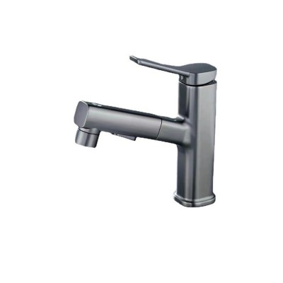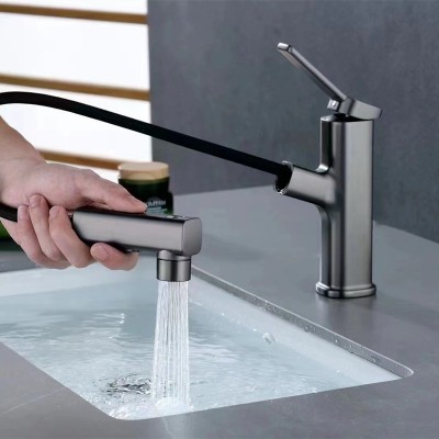 枪灰色抽拉式面盆冷热双用水龙头卫生间浴室柜台盆洗脸盆防溅龙头1套