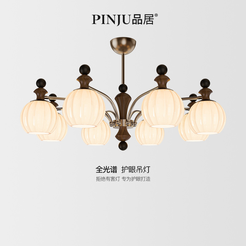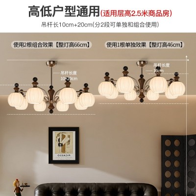 法式中古风客厅吊灯主灯复古新中式感vintage南洋胡桃木灯具