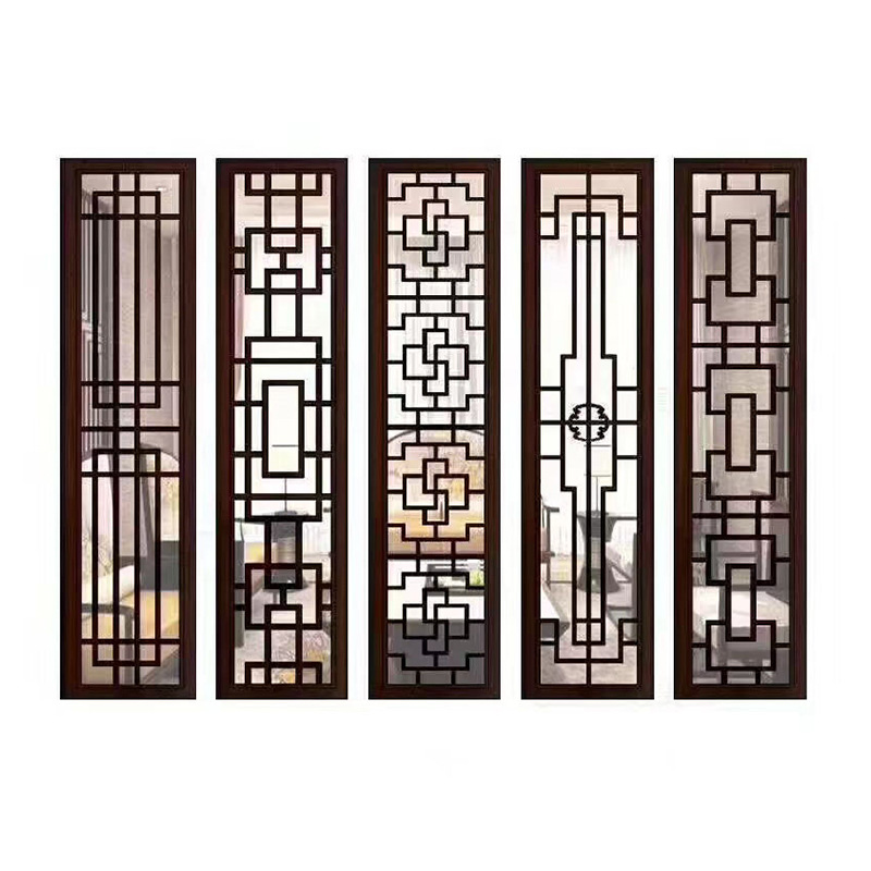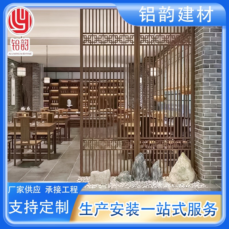 仿古风木纹铝窗花餐厅酒店室内装饰格子屏风隔断造型铝雕花批发