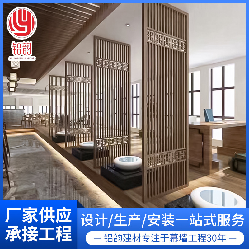家用铝窗花隔断铝材屏风装饰镂空造型格栅木纹背景墙金属镂空隔断