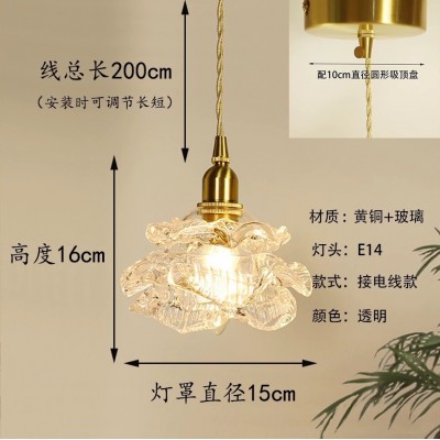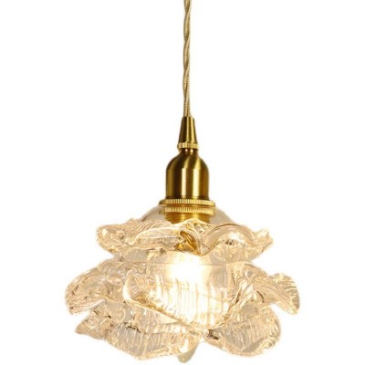 法式轻奢小玫瑰玻璃吊灯复古全铜客厅背景卧室床头吊灯餐厅吧台灯