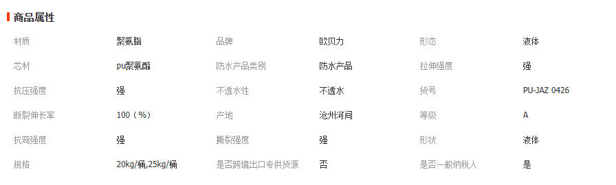 欧贝力pu聚氨酯防水涂料外墙屋顶卫生间厨房防水裂缝修补现货供应