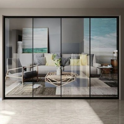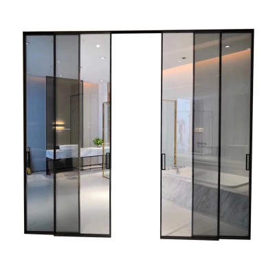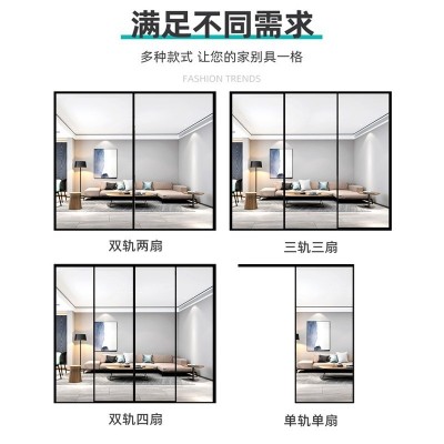 极窄钛美铝合金推拉玻璃门 家用简约阳台隔断移门 现代厨房推拉门
