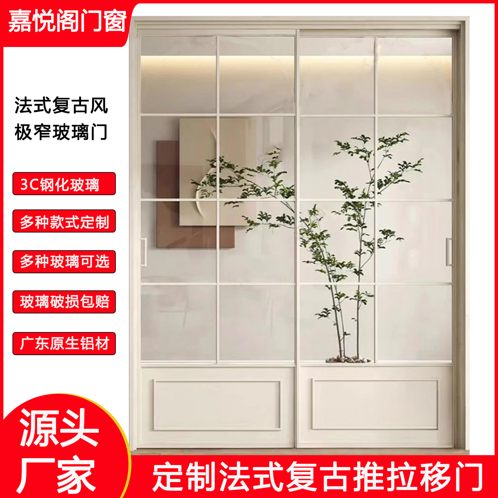 铝合金玻璃移门室内厨房阳台卫生间隔断门复古门推拉门优质家用