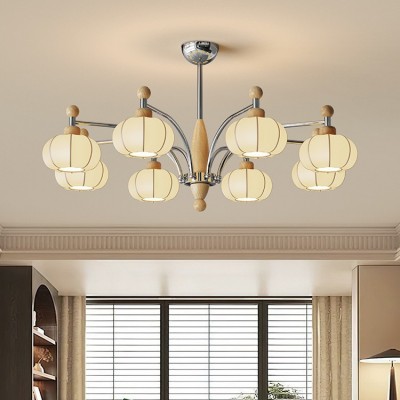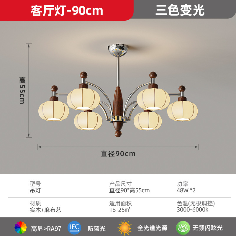中古实木客厅吊灯复古胡桃木色高级感大厅主灯法式南洋风布艺灯具 1件