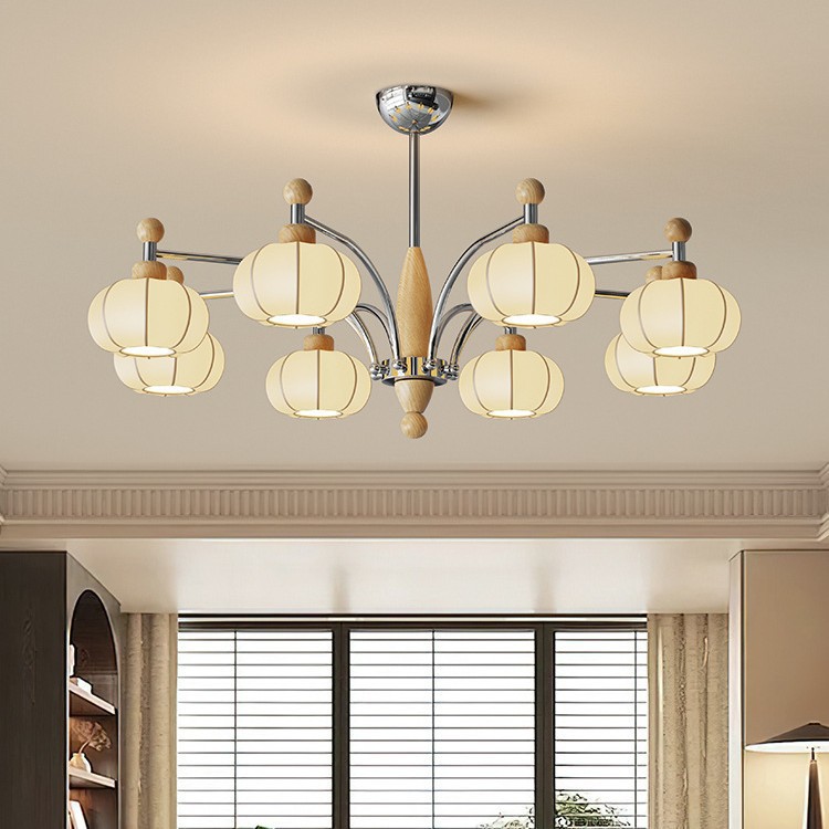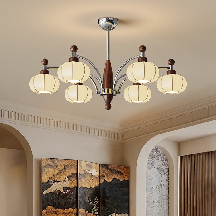 深圳市灯语有约灯饰有限公司发布的中古实木客厅吊灯复古胡桃木色高级感大厅主灯法式南洋风布艺灯具 1件图集库