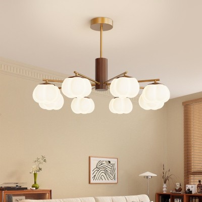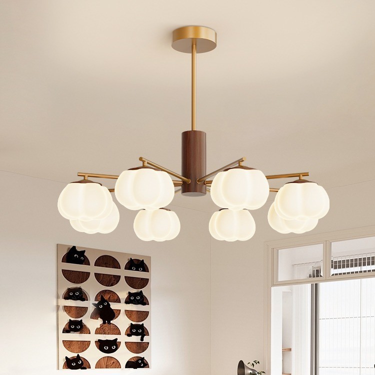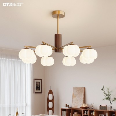 深圳市灯语有约灯饰有限公司发布的中古风吊灯客厅灯2025年新款黑胡桃木色侘寂风奶油棉花卧室餐厅灯 1件图集库