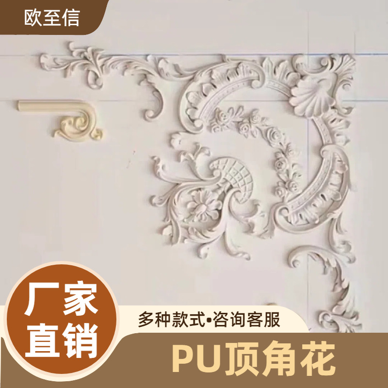 郑州欧至信装饰材料有限公司发布的法式PU顶角花墙面天花装饰法式PU吊顶花角别墅弯角客厅顶面转角花 1个图集库