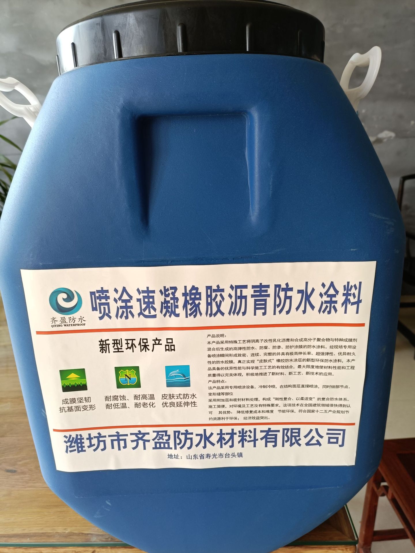 潍坊市齐盈防水材料有限公司发布的喷涂速凝橡胶沥青防水涂料高粘抗滑水性生产厂防漏 1000公斤图集库