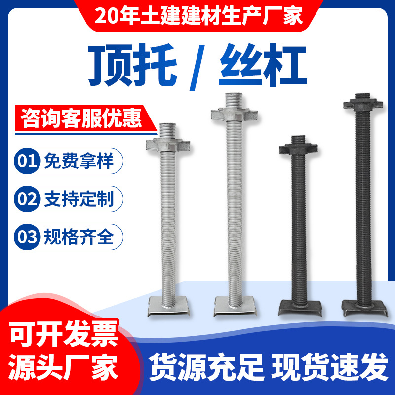 顶托丝杆生产厂家 现货实心空心钢管脚手架顶托底托建筑丝杠顶托 1个