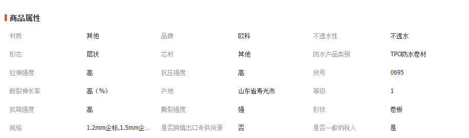 山东欧科防水科技有限公司发布的欧科热塑性聚烯烃tpo内增强防水卷材预铺高分子防水tpo卷材抗穿刺 2平方米图集库