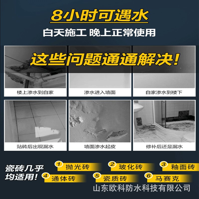 山东欧科防水科技有限公司发布的欧科天冬聚脲防水涂料免砸砖透明防水胶 卫生间阳台专用修缮涂料 2套图集库