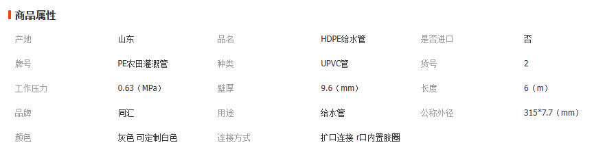 山东同汇管业有限公司发布的济南现货HDPE给水管 农田灌溉排水管饮用水园林滴灌大口径塑料管 6米图集库