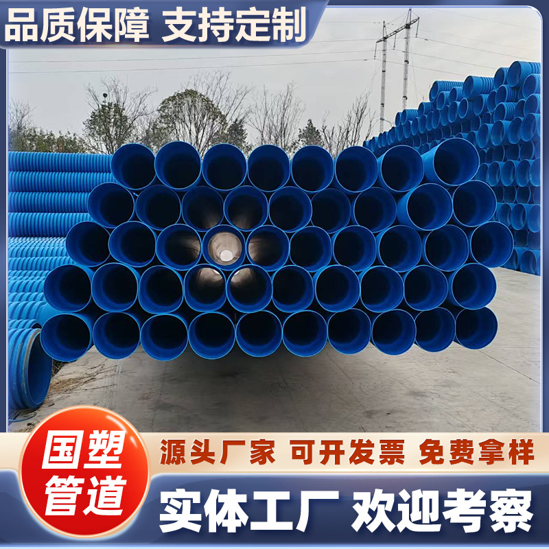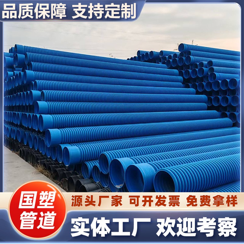 HDPE双壁波纹管厂家SN16高环刚度多种连接方式 市政排水排污管材 1米