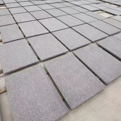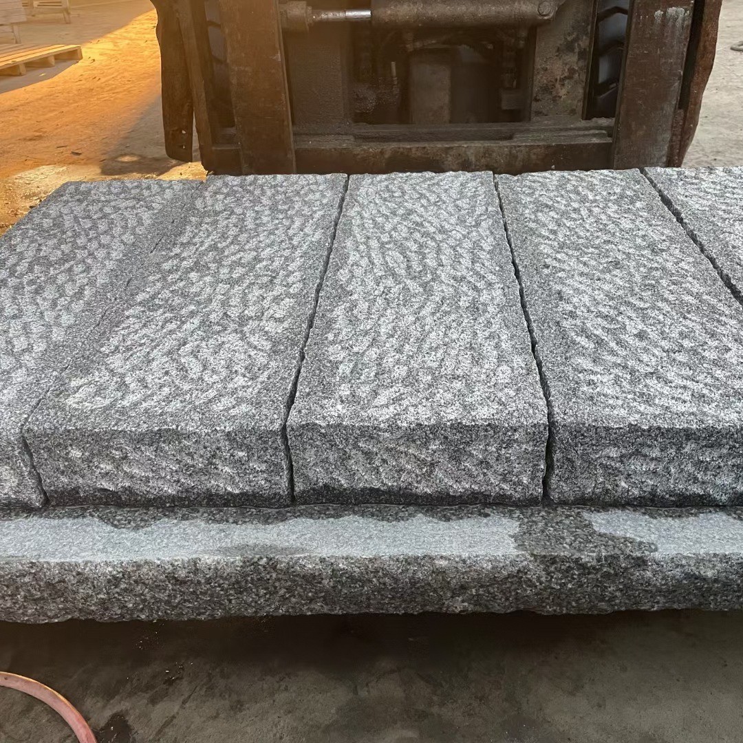山东芝麻黑色深灰石材工程板火烧面道路地铺石板 路牙石批发 1平方米