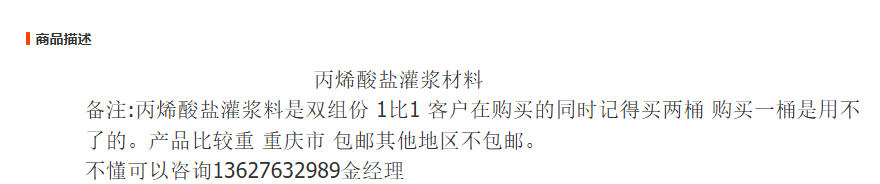 重庆腾纤建筑材料有限公司发布的丙烯酸盐灌浆料 丙烯酸灌浆料混凝土专用 注浆物料AB料 灌浆料 1桶图集库