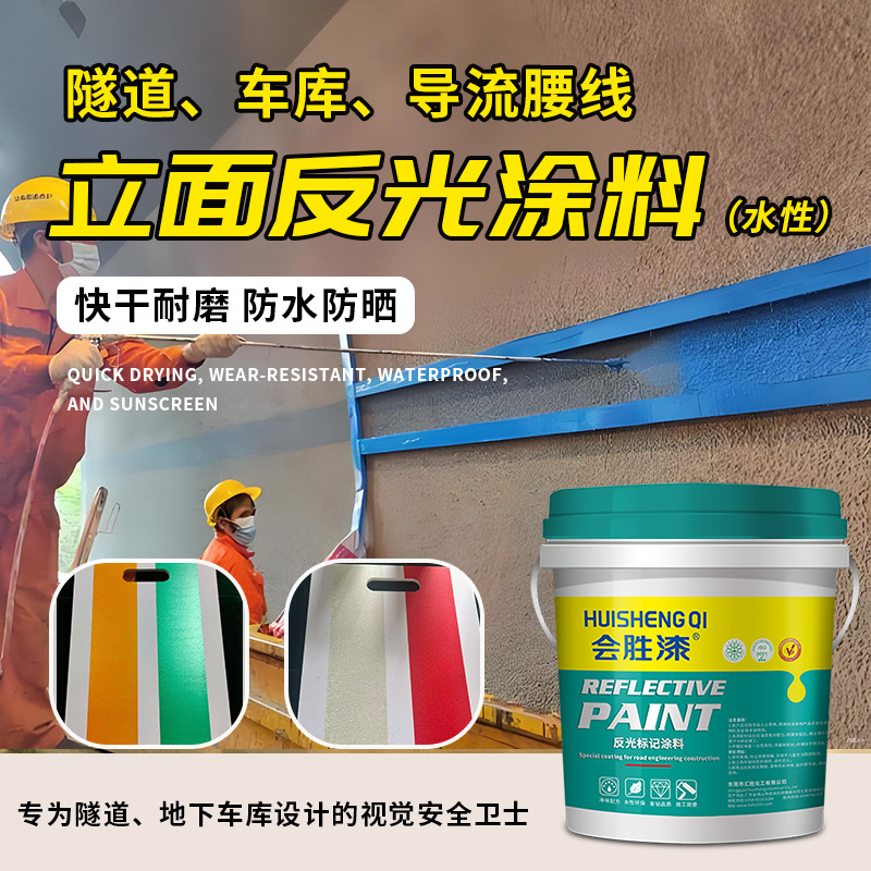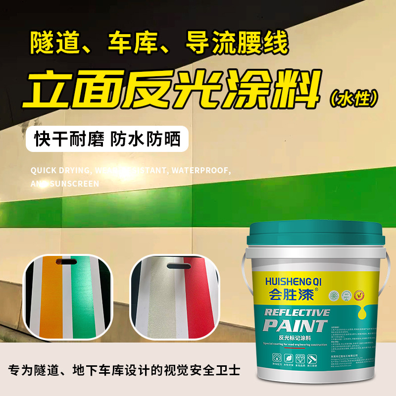 东莞市汇胜化工有限公司发布的会胜漆超亮水性反光漆隧道腰线反光涂料车库墙面导流线标线油漆 1千克图集库
