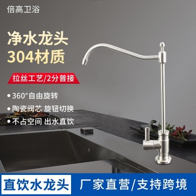 304不锈钢弯管直饮水龙头 拉丝工艺360°旋转家用厨房水龙头现货 1件
