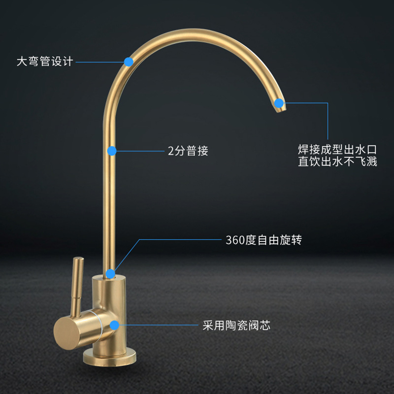 黑色304不锈钢净水龙头厨房龙头拉丝工艺可旋转直饮钛金净水龙头 1件