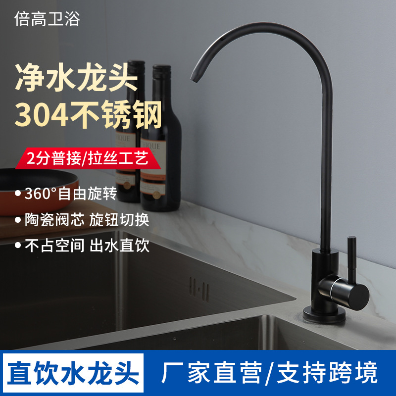 开平市水口镇倍高卫浴厂发布的黑色304不锈钢净水龙头厨房龙头拉丝工艺可旋转直饮钛金净水龙头 1件图集库