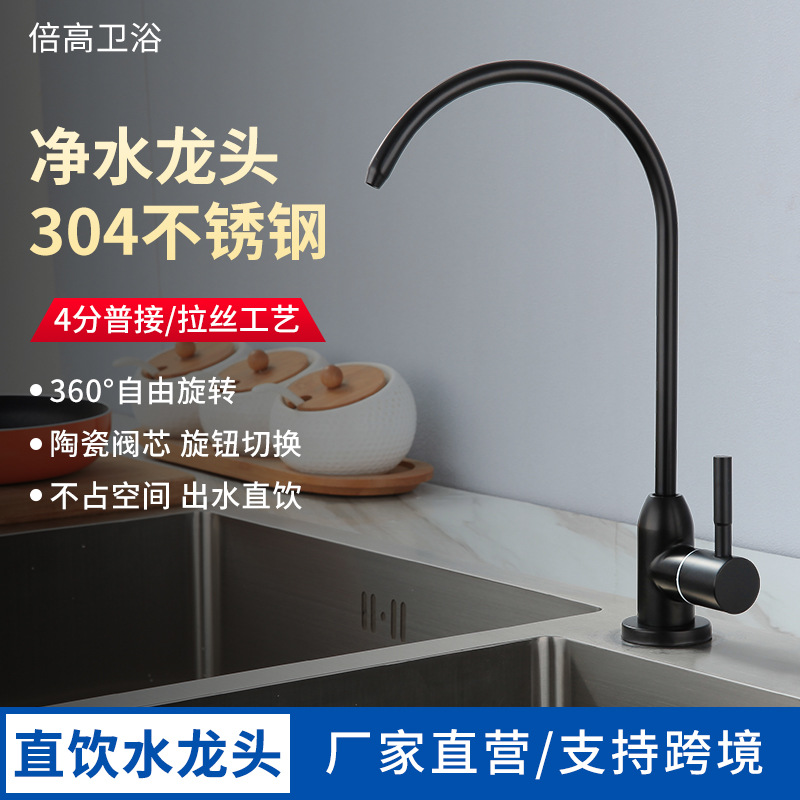 开平市水口镇倍高卫浴厂发布的304不锈钢净水器龙头2分4分美式大弯直饮水机龙头黑色菜盆水龙头 1件图集库