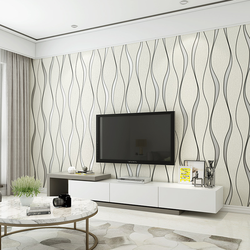 义乌市居翼装饰材料有限公司发布的北欧几何菱形波浪条纹壁纸大气鹿皮绒墙纸卧室客厅电视背景墙纸 1卷图集库