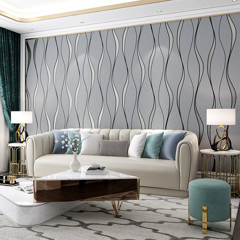 北欧几何菱形波浪条纹壁纸大气鹿皮绒墙纸卧室客厅电视背景墙纸 1卷