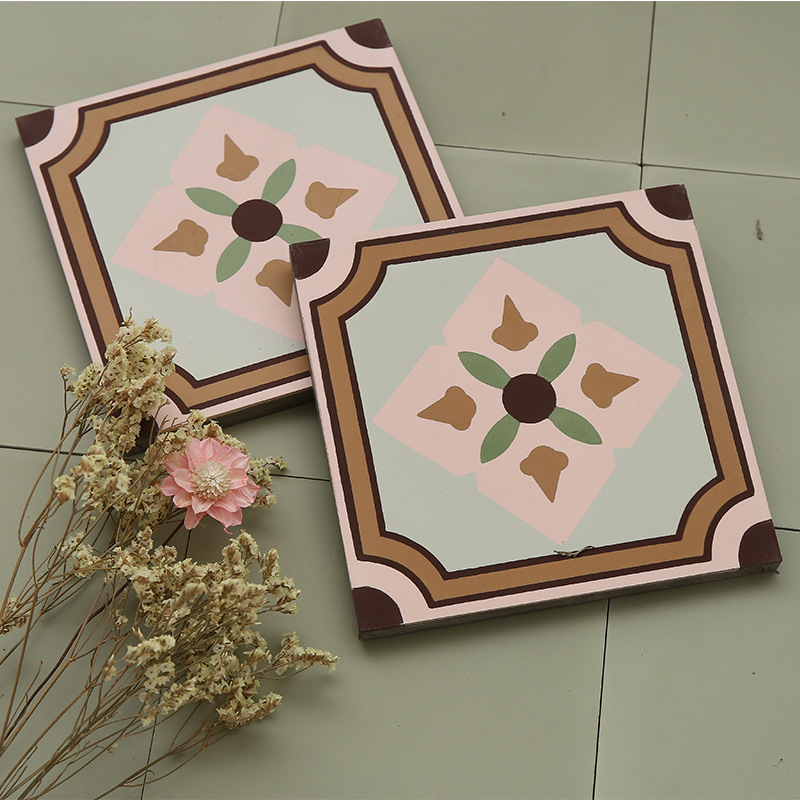 民宿200复古200厨房手工防滑瓷砖地砖旧阳台花砖特色泥灰小花水泥 25片