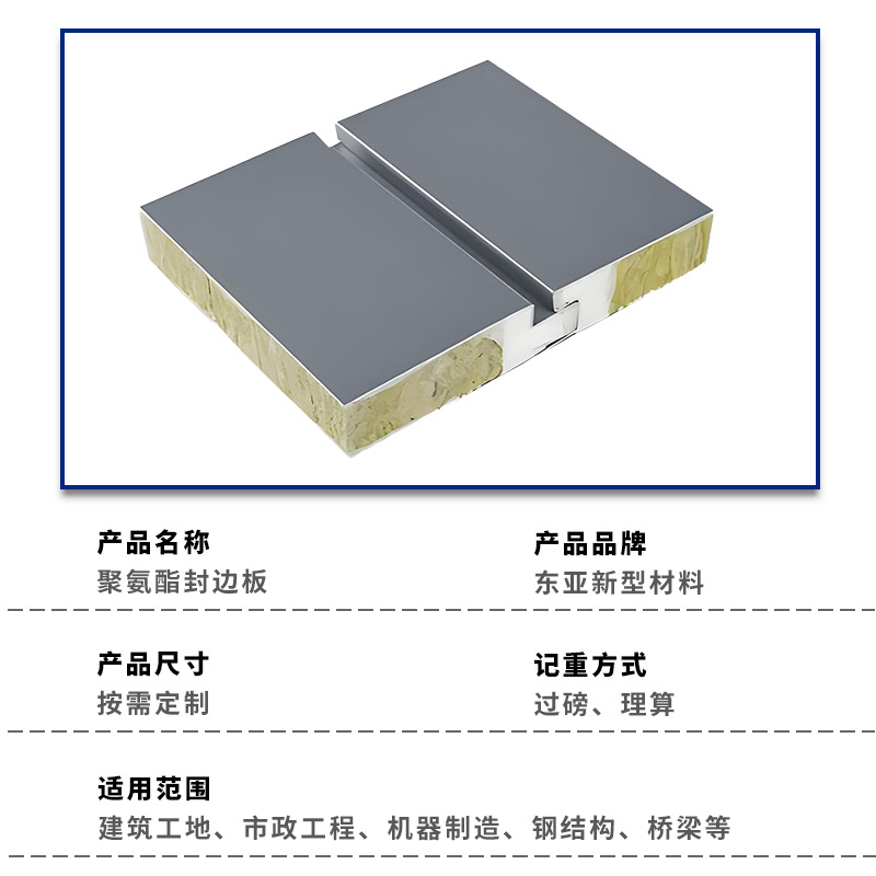 聚氨酯封边岩棉板保温隔热吸音食品工厂冷藏车间50厚75厚夹芯板 3米