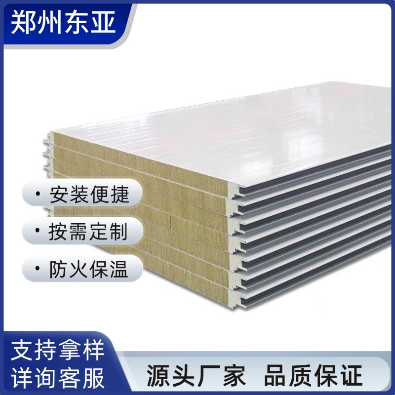 岩棉夹芯板切面平整咬合牢固河南玻璃棉彩钢复合板隔热隔音长方形 1米