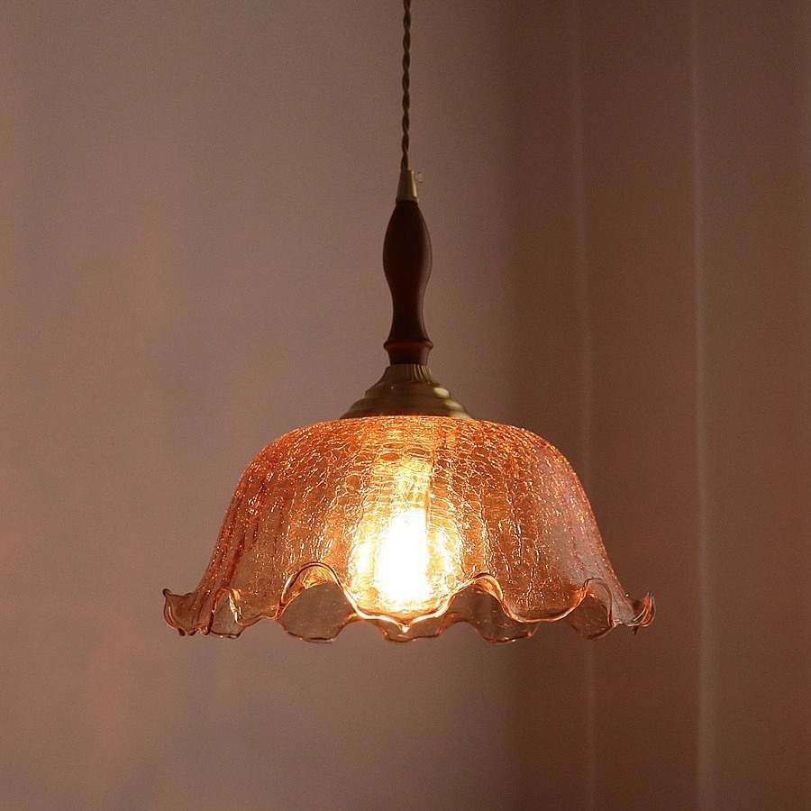 日式复古黄铜裂纹玻璃吊灯卧室床头民宿餐厅吧台玄关过道阳台灯具