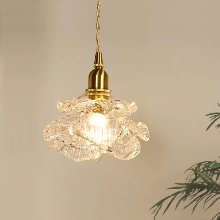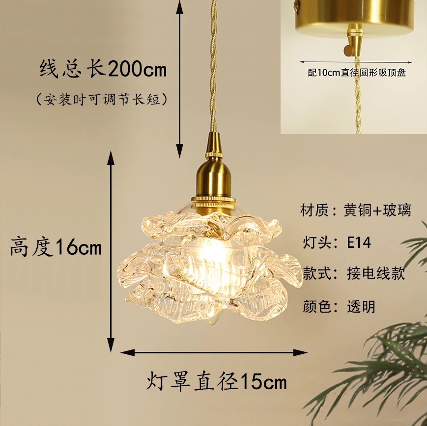 法式轻奢小玫瑰玻璃吊灯复古全铜客厅背景卧室床头吊灯餐厅吧台灯