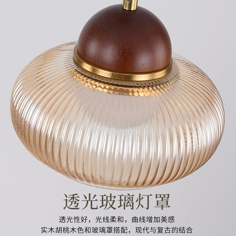 中古风餐厅吊灯美式复古吧台餐桌法式侘寂风岛台胡桃木色中山灯具