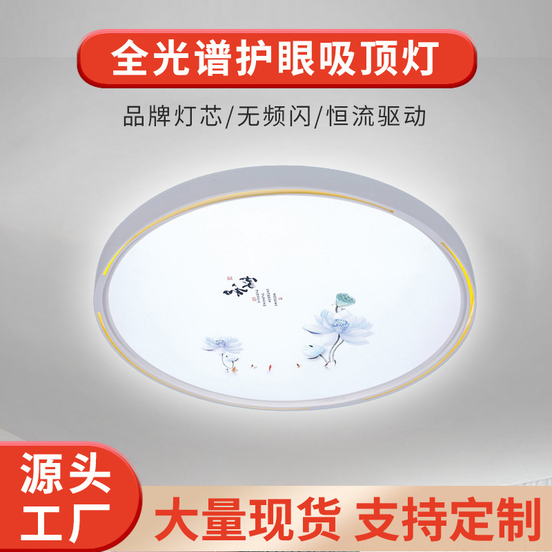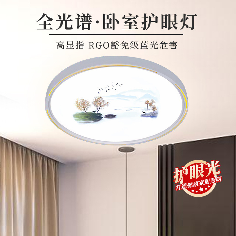 led全光谱护眼三防灯卧室餐厅新中式圆形客厅装饰画壁灯led吸顶灯