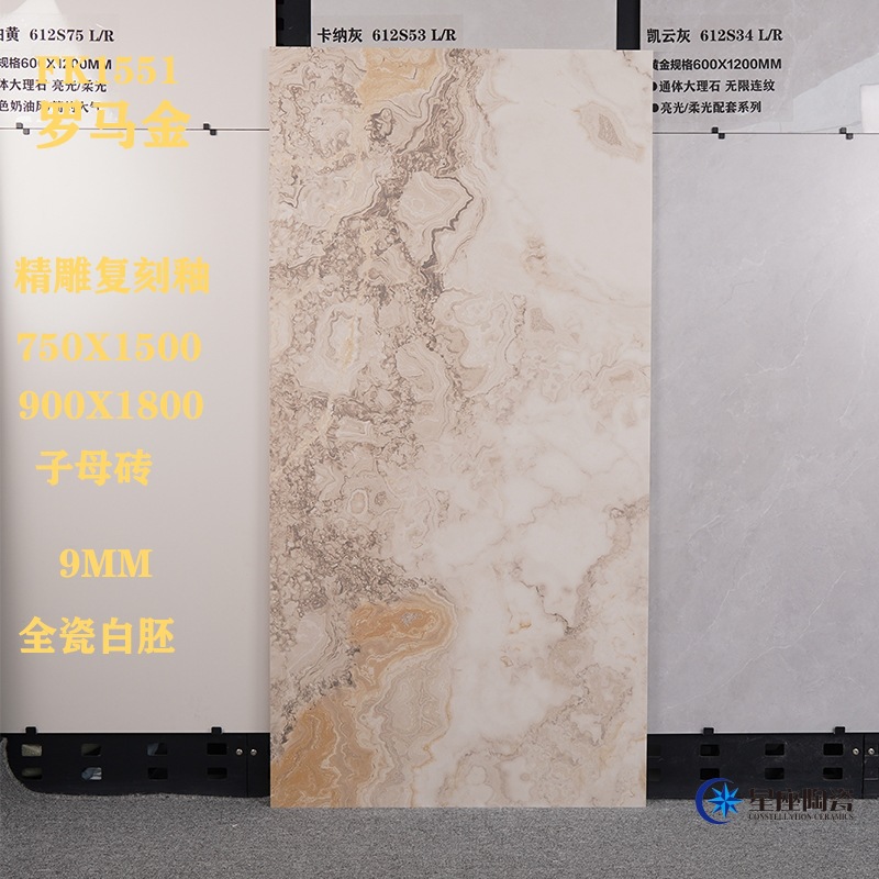 佛山灰色米黄哑光精雕复刻釉通体大理石瓷砖750x1500客厅地砖墙砖