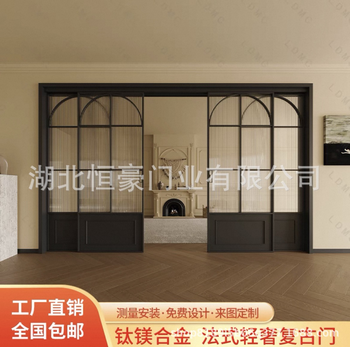 钛镁合金完美系统复古推拉门隔断吊轨门厨房阳台客厅三联动移门