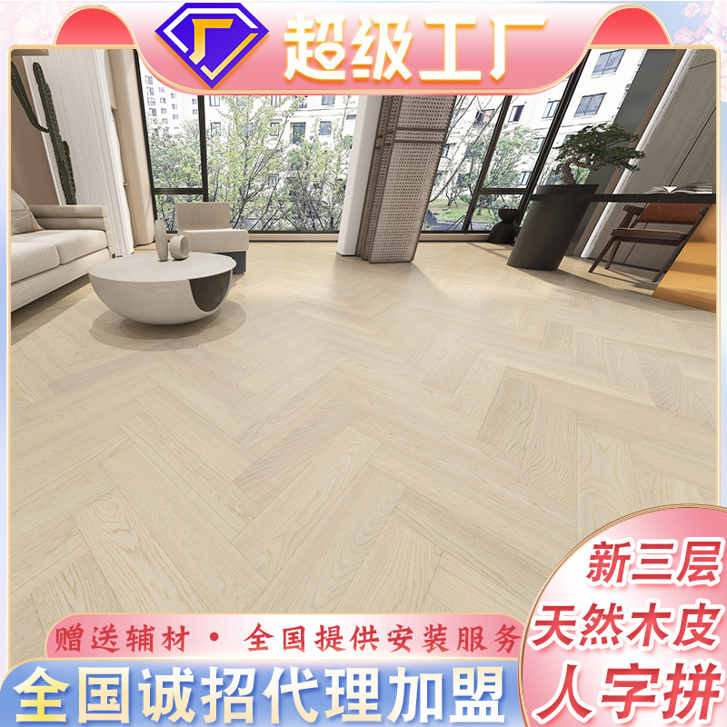 新三层14mm人字拼地板艺术拼花现代原木简约风家装锁扣复合木地板