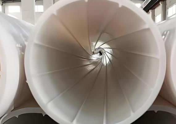 核心原理: 在管道内壁设计有数条凸起的螺旋形导流线。当水流下时,这些导流线会引导水流沿着管壁形成螺旋状的旋涡,使其贴紧管壁旋转而下,而不是像在普通管道中那样呈“水柱”状自由落体,并夹杂大量空气产生哗啦声。