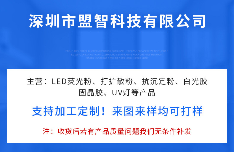 3、建议胶水与荧光粉之比例为1:(0.12~0.20),可视客户之要求去调配配比。