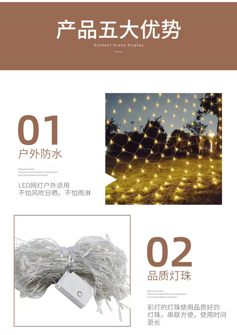 临海市伟吉灯饰厂发布的LED渔网灯满天星装饰圣诞彩灯草坪装饰防水灯串户外广场装饰图集库