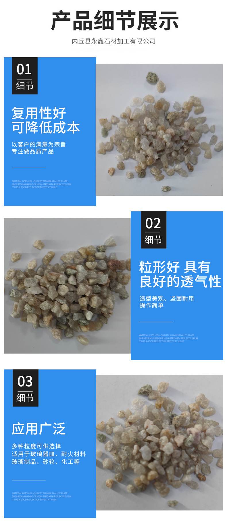 内丘县永鑫石材加工有限公司发布的供应水处理石英砂滤料冶金铸造石英粉喷砂除锈草坪填充石英 砂批图集库