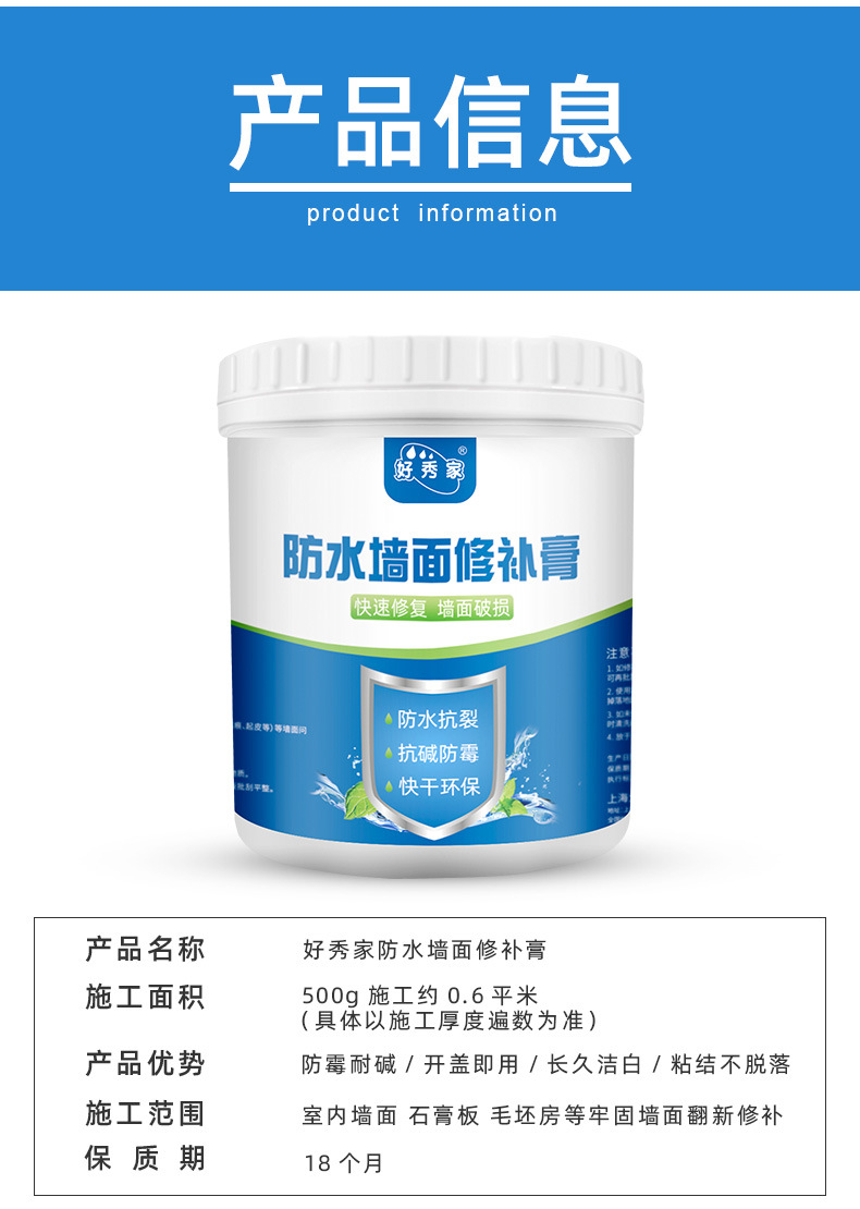上海大母指化工科技有限公司发布的好秀家防水补墙膏墙面修补膏漆白色防水防霉腻子膏家用一 件代发图集库