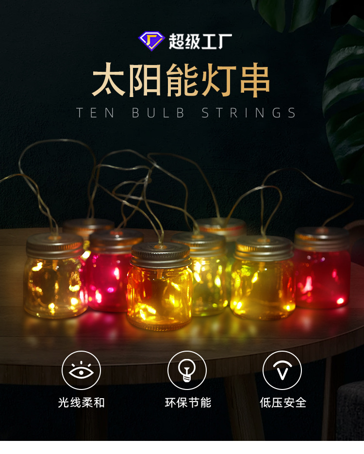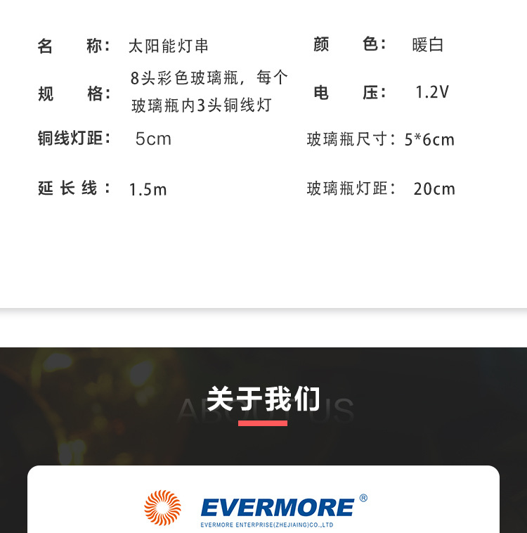 浙江世宸工贸有限公司发布的LED太阳能灯串彩色玻璃瓶灯串铜线灯室外圣诞节日装饰闪灯图集库