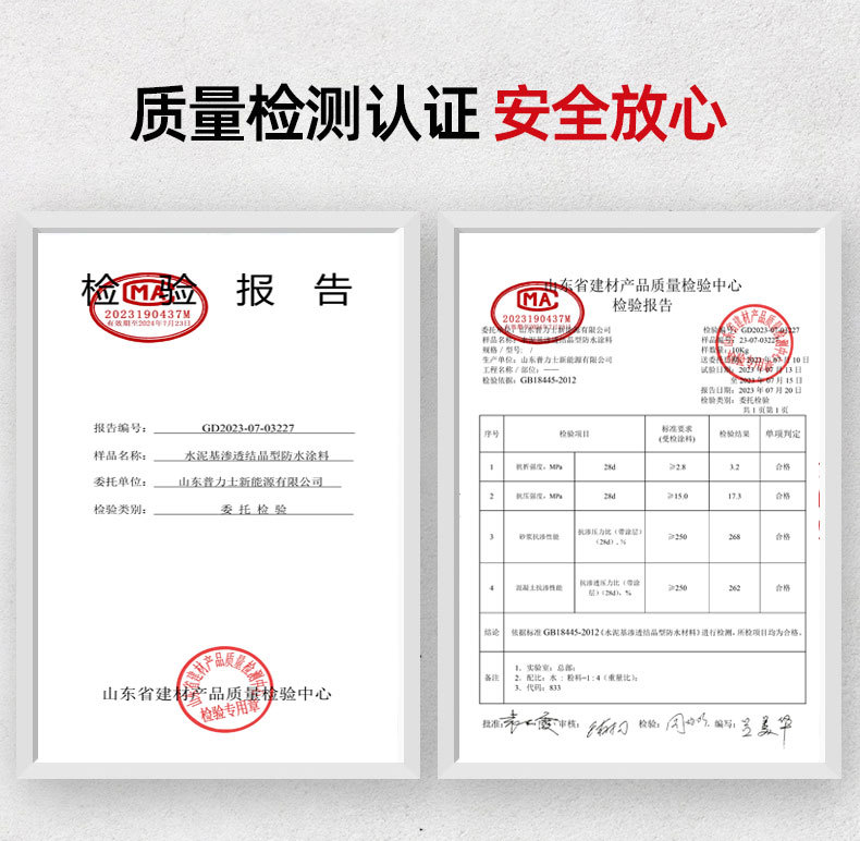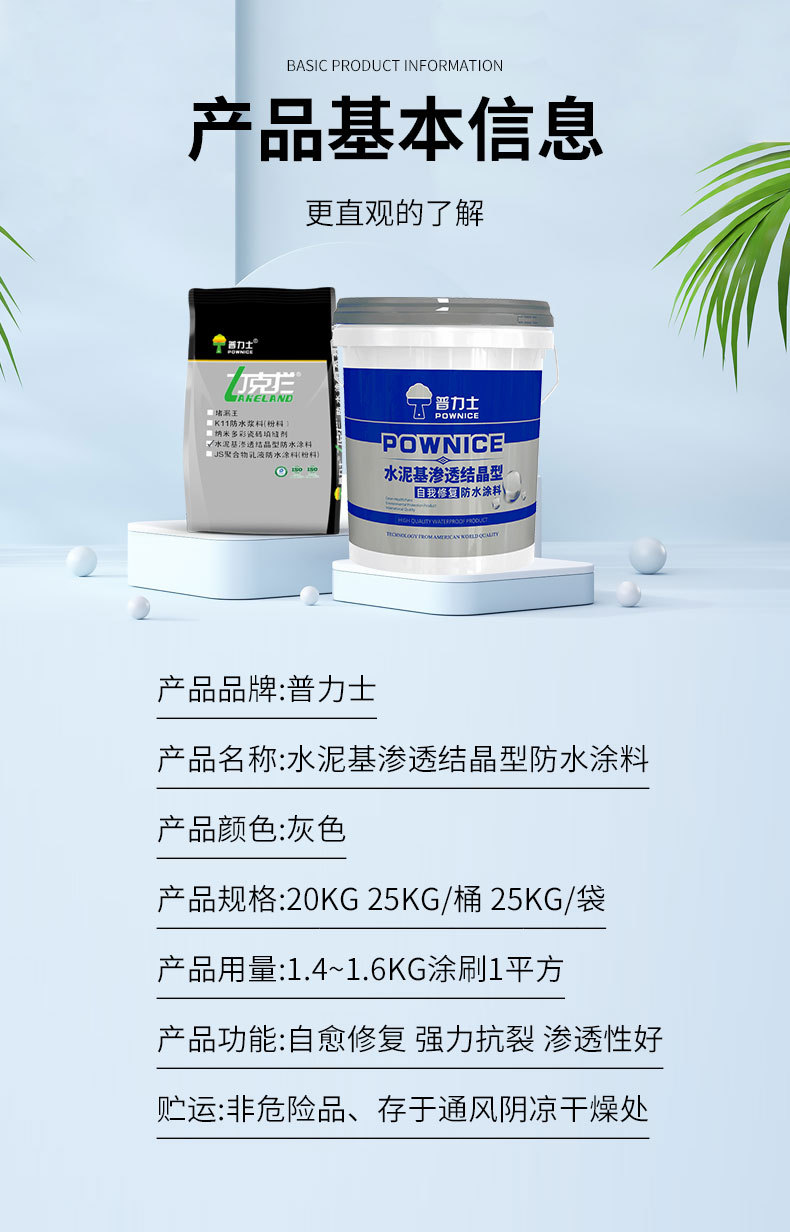 山东普力士新能源有限公司发布的卫生间防水地下室防水补漏停车场防漏水泥基渗透结晶型防水涂料图集库