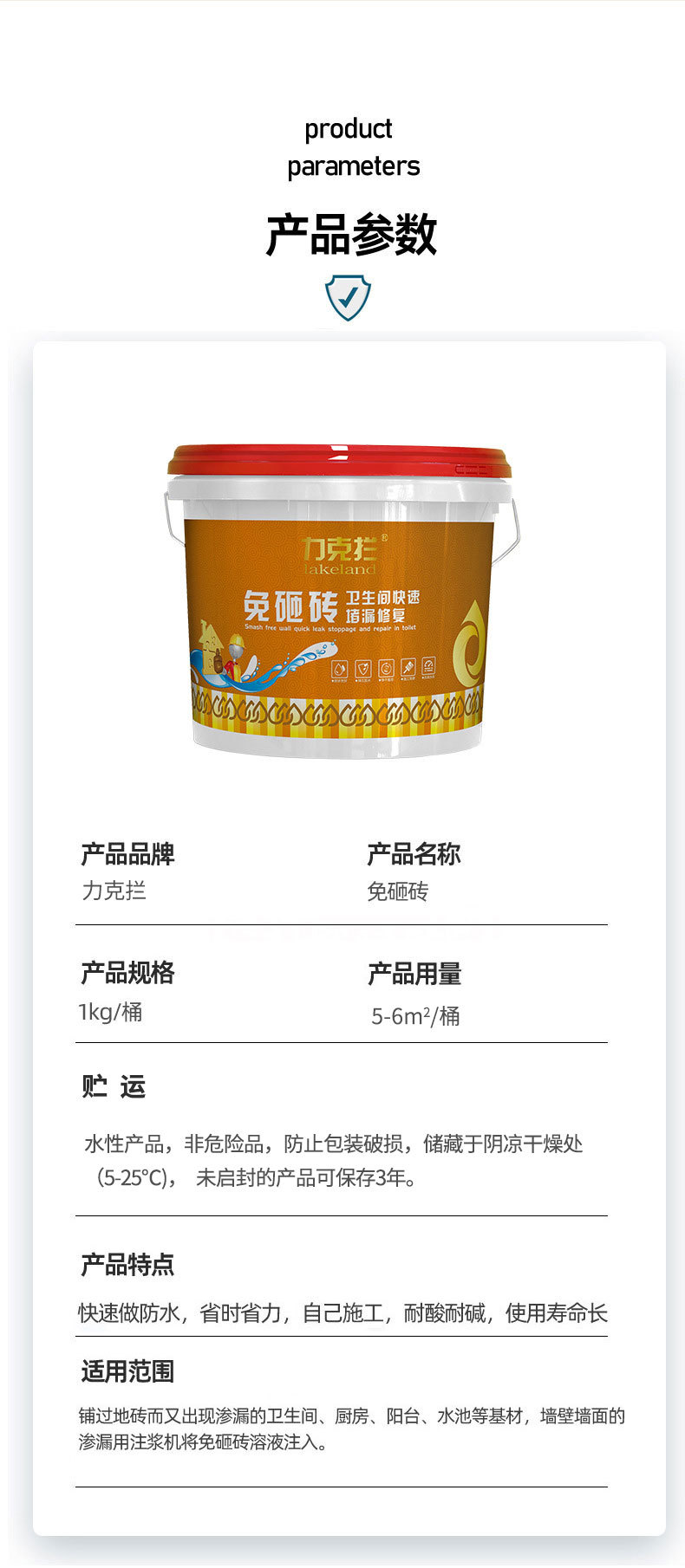 山东普力士新能源有限公司发布的厂家直销厨房卫生间渗水漏水补漏剂堵漏防水剂材料免砸砖防水涂料图集库