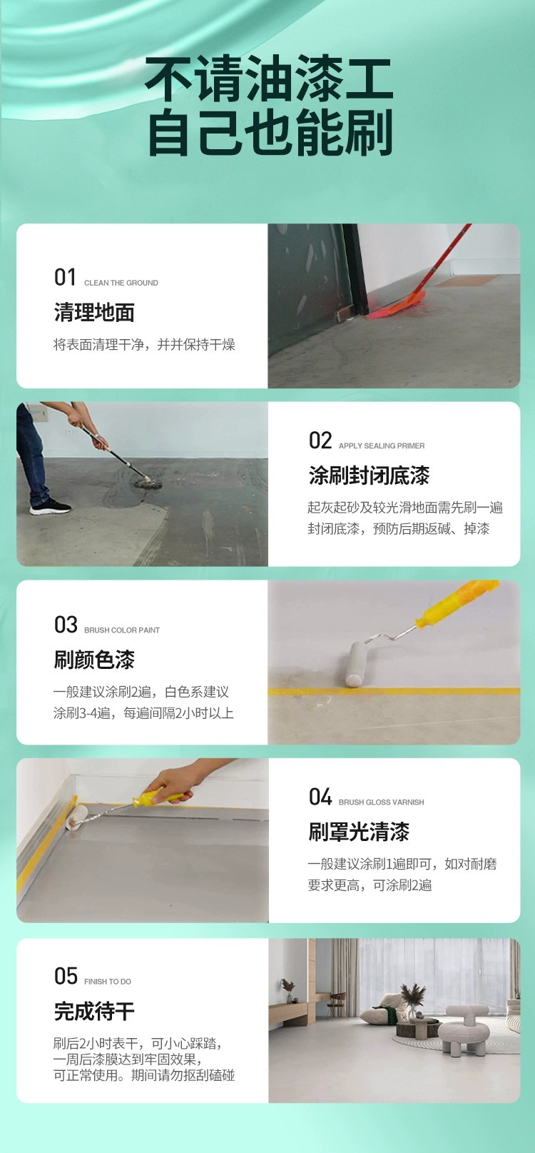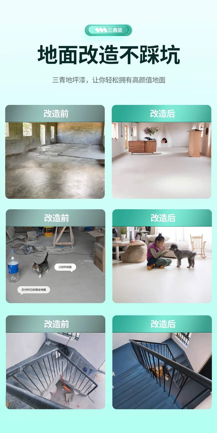 福建三青新材料有限公司发布的三青漆水性地坪漆水泥地面漆家用室内地板漆专用防水改造地平油漆图集库