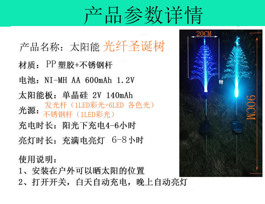宁波萤火虫灯饰有限公司发布的跨境户外太阳能LED地插灯光纤圣诞树 不锈钢草坪灯装饰节日灯图集库