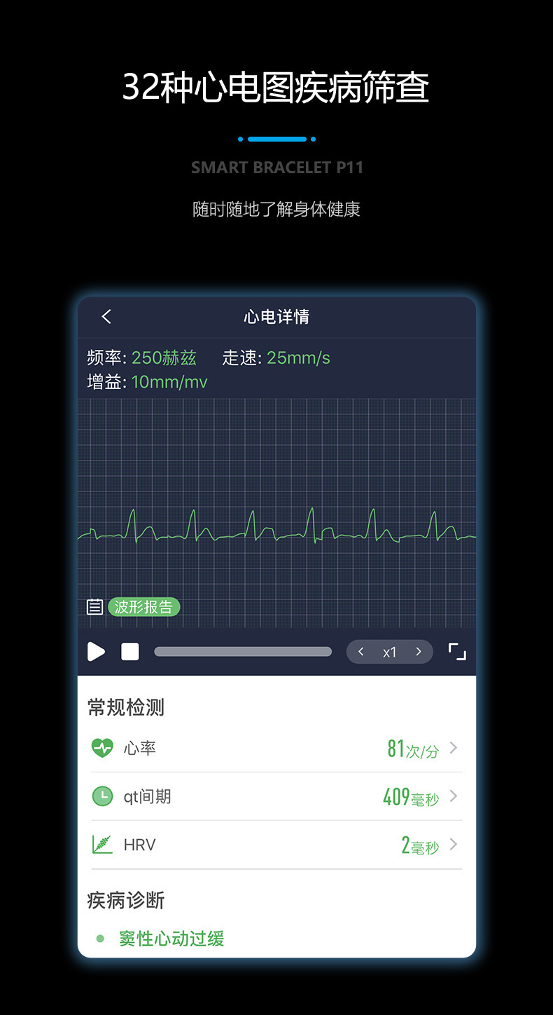 3、心电图监测 ,心电图报告(32种心电疾病筛查)