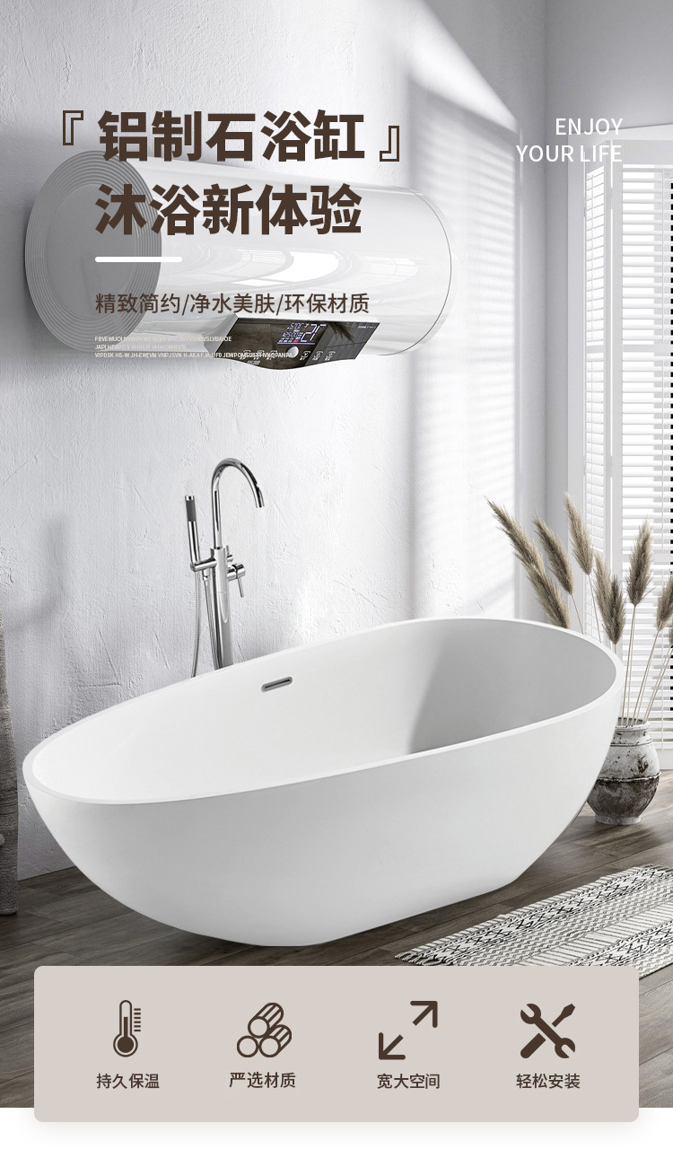 佛山市南海乐宁卫浴设备有限公司发布的厂家供应锐箭北欧简约独立式浴缸铝制石浴缸精致简约浴缸图集库